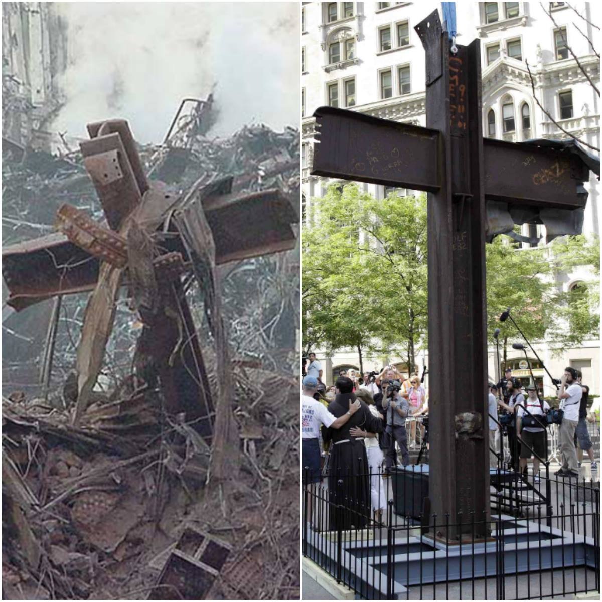 The above photo was taken of the forged steel cross found in the aftermath of the terrorist attacks of the World Trade Center in New York City on September 11, 2001. Read more about this cross in the Washington Post article entitled “9/11 memorials: The story of the cross found at Ground Zero” by clicking on the link below: